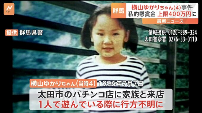 28年前、群馬県太田市のパチンコ店で、当時4歳の女の子が行方不明になった事件で、パチンコ業界の団体が私的懸賞金の上限を7月から400万円に引き上げると明らかにしました。この事件は1996年7月7日、太田市のパチ…