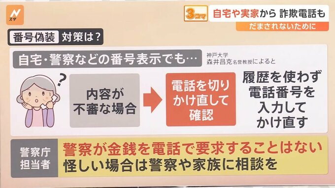 自宅や実家の番号に偽装する例も…怪しい場合は警察や家族に相談を