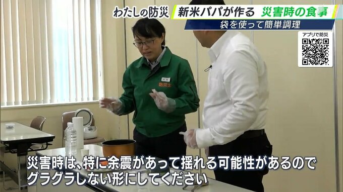 「グラグラしていると手をけがしやすいので、まず安定した形にします。災害時は、特に余震があって揺れる可能性があるので、グラグラしない形にしてください」