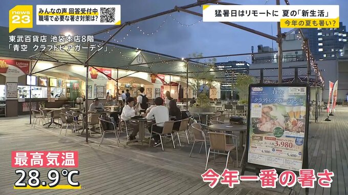 21日、東京の最高気温は28.9度と今年一番の暑さとなる中、都内のビアガーデンには夏を先取りしに来た人たちがいました。