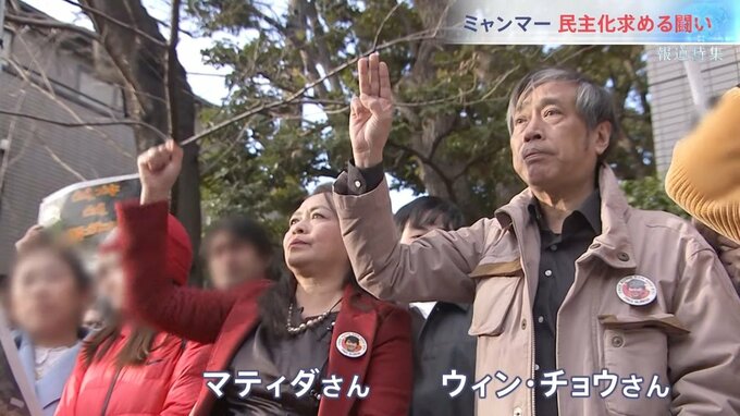「ミャンマーの軍事クーデターから3年です。日本ではニュースでもあまり取り上げられることがなくなりましたが、ミャンマーの人たちにとって決して忘れることはできないことです。都内のミャンマー大使館前にも、多くの日本に住むミャンマーの人たちが集まって、軍事政権に対する抗議の声を上げています」