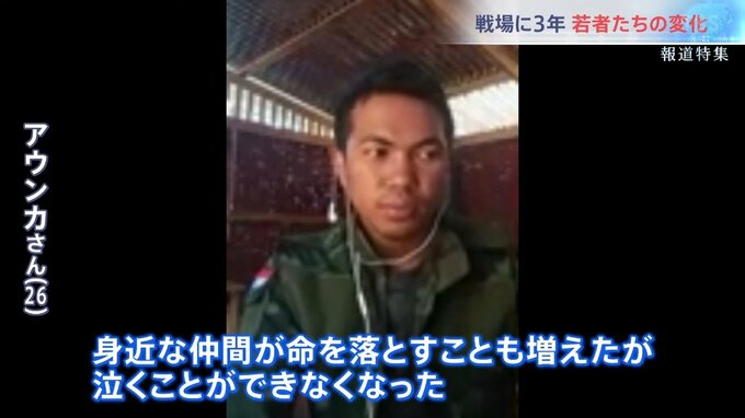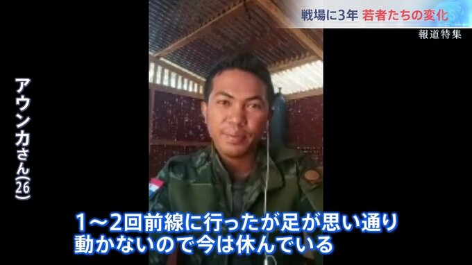 「感情が鈍ってきている。身近な仲間が命を落とすことも増えたが、泣くことができなくなった。この3年間で戦いに参加しているみんなが心に傷を抱えている。みんな3年間辛いことを経験しているので、感情が鈍っている。軍は徴兵した市民に軍服を着せ、僕たちと戦わせようとしている。僕たちはこれ以上、人を殺したくない」