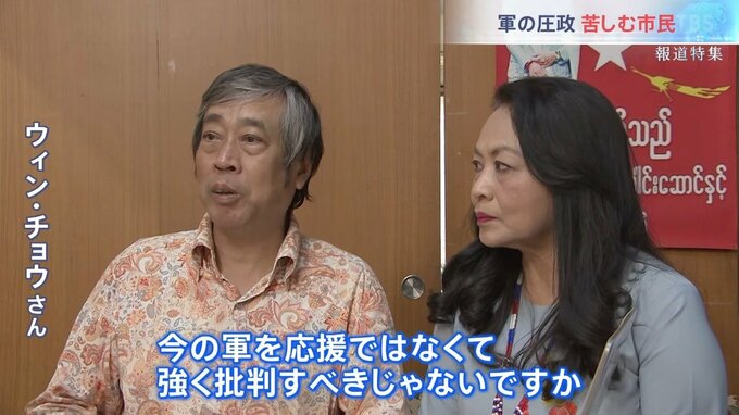 「日本政府はなぜ、同じアジアなのにもっと強く(批判を)できないの。今の軍を応援ではなくて強く批判すべきじゃないですか。その批判のひと言がないことが寂しい」