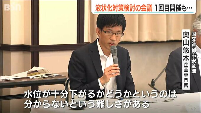 会議は3回行い液状化対策の方針について年度内に固める予定です。