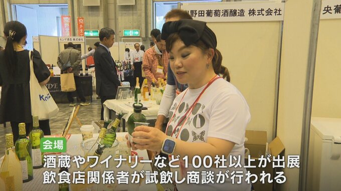 2024年は県内の酒蔵やワイナリーなど100社以上がブースを出して新商品などを紹介し、飲食店の関係者が試飲し商談も行われました。