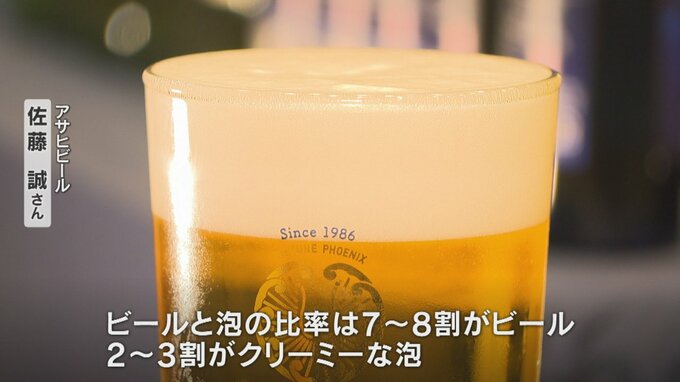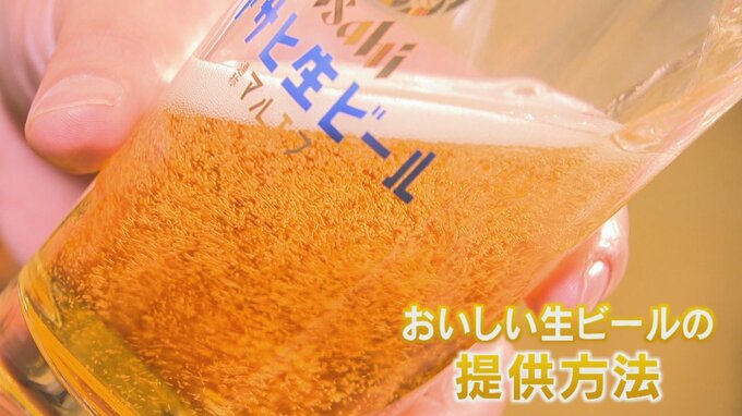 「きちんと手洗いしたグラス、ジョッキを使い、ビールを流し込みます。ビールと泡の比率は7~8割がビール、2~3割がクリーミーな泡」