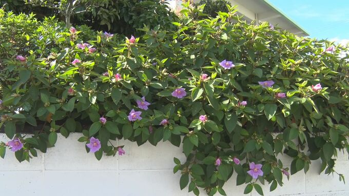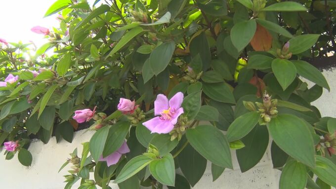 うるま市みどり町の民家で見ごろを迎えたのは、東南アジアやブラジルが原産の「ノボタン」です。