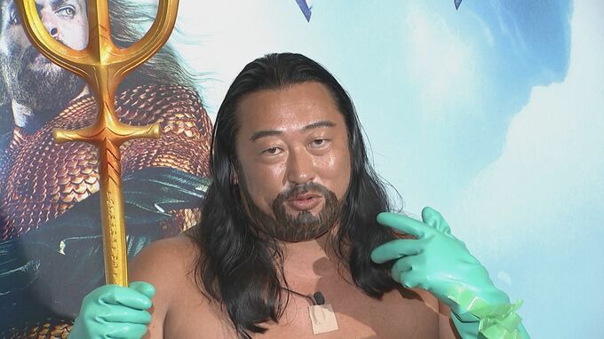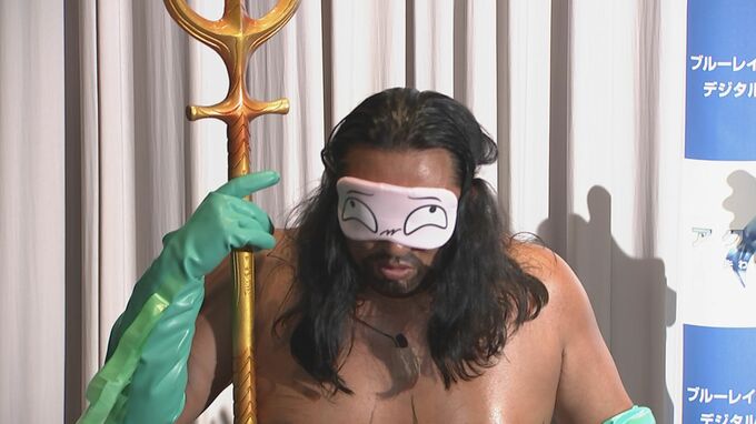 自作の衣装については“このクオリティ高い姿を撮ってください”と自信満々。しかし、髭はマジックペンで書いたと明かすと、それを皮切りに、“ご家庭でやれるアクアマンを目指しているから、これ(衣装)ほとんどホームセンターですからね。ホームセンターマンですよ。普通のゴム手袋と長靴なんです。”と笑いを誘いました。