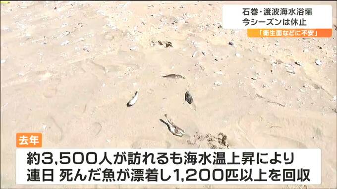 宮城県石巻市の渡波海水浴場について、市は今シーズンは開設しないことを決めました。去年、海水温が上昇し、死んだ魚が大量に流れ着いた被害が今年も想定され、衛生面などに不安が残るとしています。