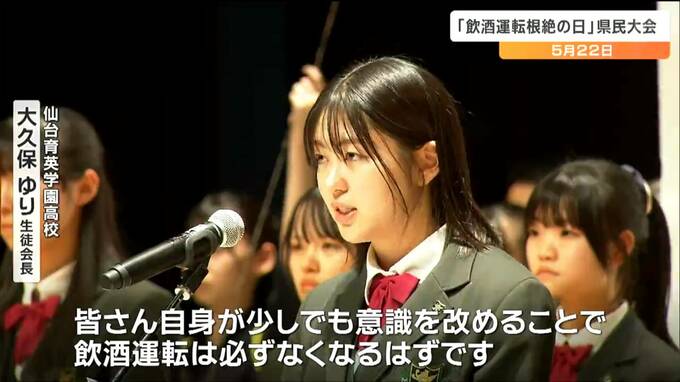 2005年に宮城県多賀城市の国道で飲酒運転のRV車が高校生の列に突っ込み、18人が死傷した事故から22日で19年です。事故が起きた5月22日を県は「飲酒運転根絶の日」と定めています。この日に合わせて県民大会が開かれ、飲酒運転のない社会に向けて取り組むことを誓いました。