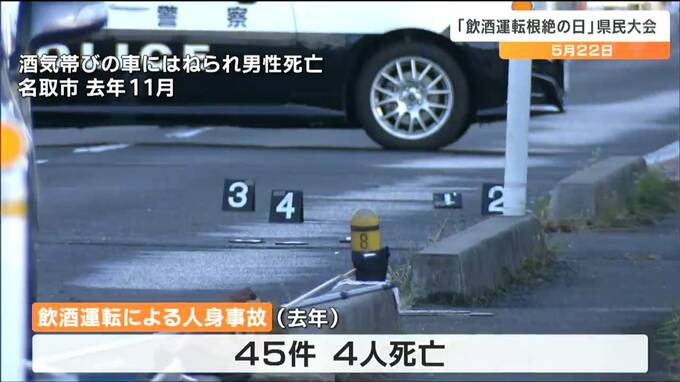 県内では去年、飲酒運転による人身事故が45件発生し、4人が死亡していて、依然、飲酒運転はなくならない状況です。