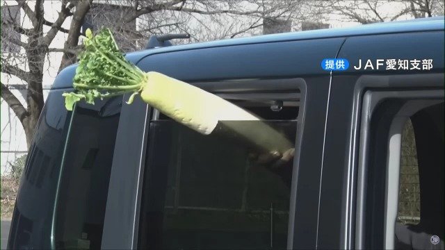 そして、軽乗用車の窓に差し込んだ大根も…簡単に切れました。