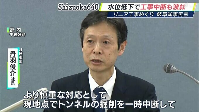 瑞浪市での水位の低下をめぐっては、丹羽社長は5月16日の会見で「静岡工区の状況とは異なる」という考えを示しています。