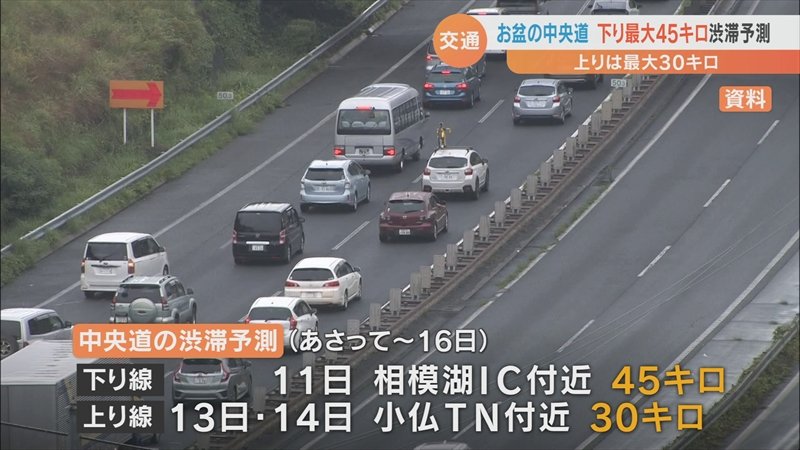 中央道では下りで最大45km、上りで最大30kmの渋滞が予想されています。