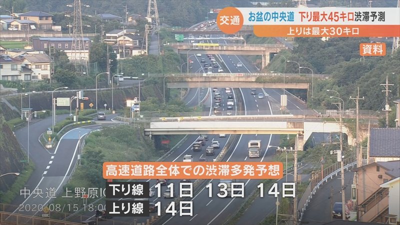 中日本高速道路によりますと8月10日から16日のお盆期間に予想される中央道の渋滞は