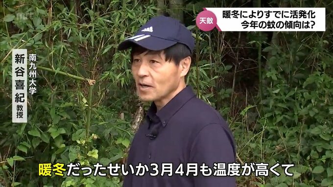 昆虫学に詳しい南九州大学の新谷喜紀教授は、今年は例年に比べ、蚊の出現が早いと指摘。