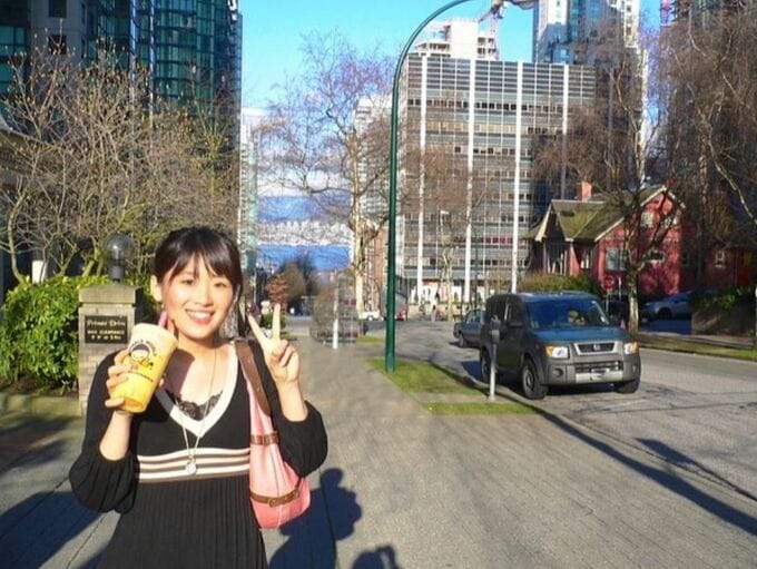 さらに「写真は16年前に旅行した時のです」と、ノース・バンクーバーと思われる場所で撮影した20代のスナップ写真を掲載。「若いな~笑」と照れています。
