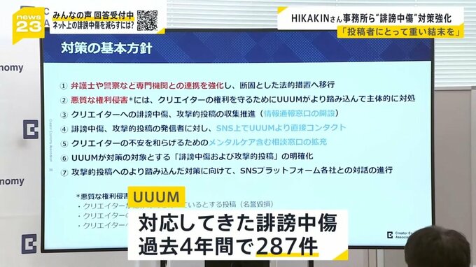 22日、HIKAKINさんが所属する事務所「UUUM」らは、「誹謗中傷対策を強化する」と発表しました。