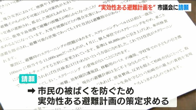 原発立地地域の住民団体が実効性のある避難計画の策定を求め22日、柏崎市議会に請願を提出しました。