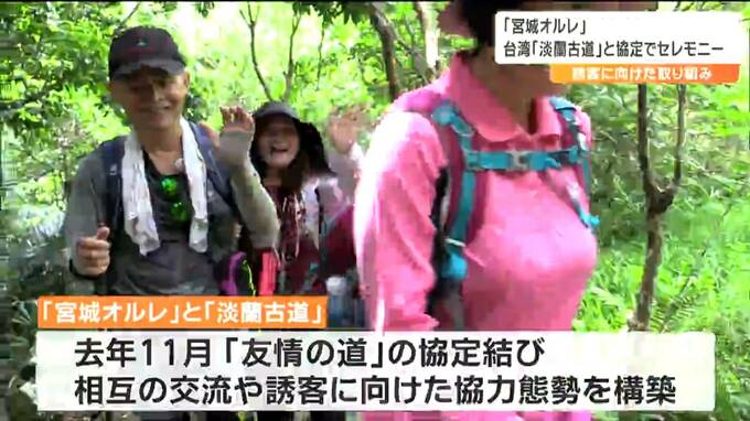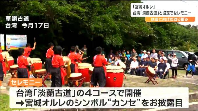 観光客を呼び込もうと、観光トレッキング「宮城オルレ」と台湾のトレイルコース「淡蘭古道(たんらんこどう)」の相互交流を図る協定が結ばれたことを受け、先週、台湾で記念のセレモニーが開かれました。