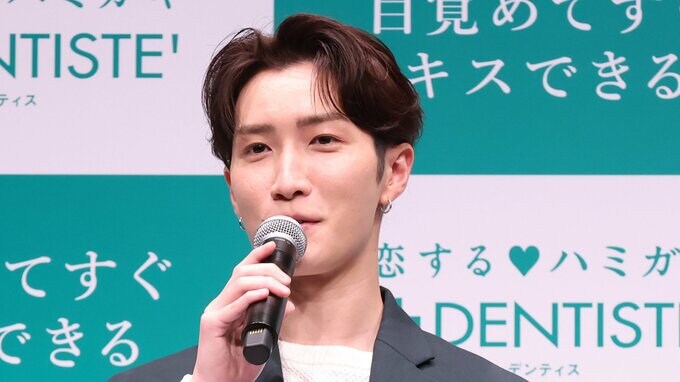 Snow Manの渡辺翔太さんが、“目覚めてすぐキスできる”口臭予防歯磨き粉「デンティス」の新CM発表会に登場しました。