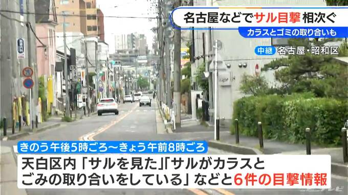 警察などによりますと、22日午後5時頃から23日午前8時頃にかけて、名古屋市天白区内で「サルを見た」「サルがカラスとごみの取り合いをしている」など6件の目撃情報が寄せられました。