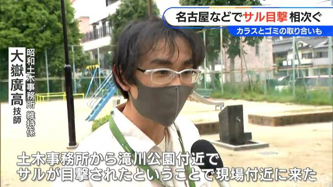 「土木事務所から滝川公園付近でサルが目撃されたということで、現場付近に来ました。昭和区内では覚えのない案件、驚きです」