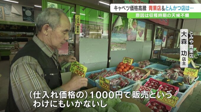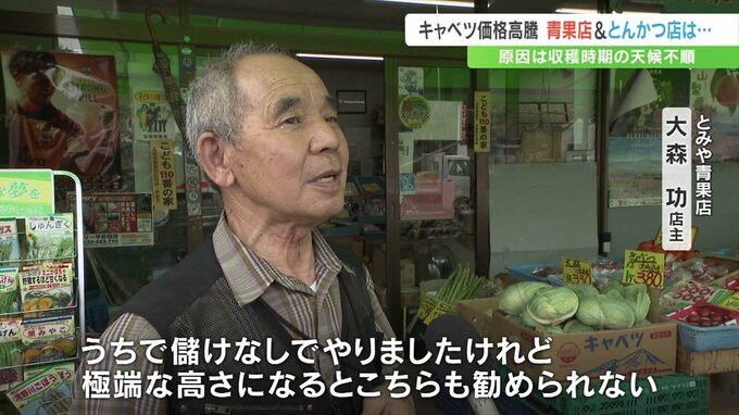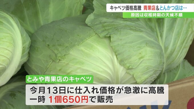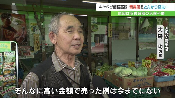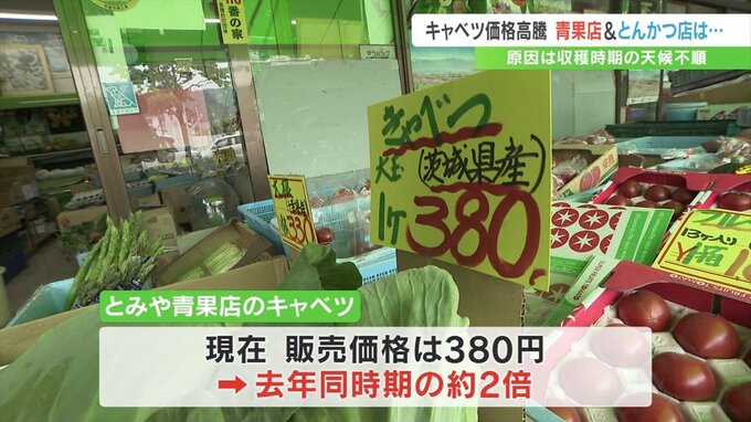 「食卓にかかせないキャベツですが、甲斐市の青果店では1個380円と高値の水準が続いている」