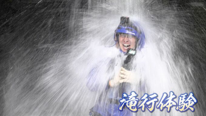 全行程約700メートルを進んだ先に見えてきたのは…高さ約6メートルの通称「ゴルジュの滝」。(フランス語で「のど」…切り立った岸壁に挟まれた峡谷の意味)ここでは滝行体験もできます。