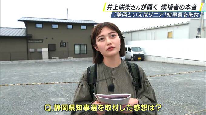 選挙ウォッチングが趣味というタレントの井上咲楽さんが静岡県知事選挙を取材しました。これまでも多くの政治家に話を聞いてきた井上さんが3年前に続き、政党の公認、推薦を受けた3候補の本音を引き出しました。