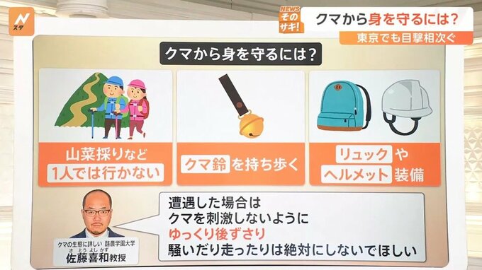 クマの生態に詳しい酪農学園大学の佐藤喜和教授は、「遭遇した場合は、クマを刺激しないようにゆっくり後ずさり。騒いだり走ったりは絶対にしないでほしい」と話しています。
