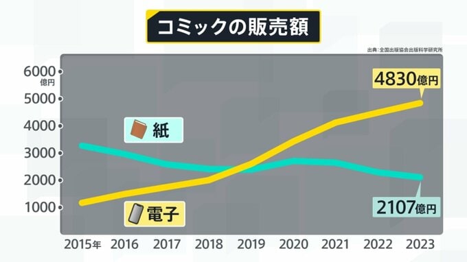 ただ、コミックの販売額は2023年に▼紙媒体が2107億円、▼電子書籍が4830億円と売れてはいますが、紙媒体ではなく電子書籍が売れているという現状です。