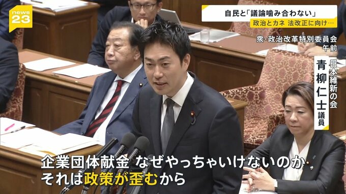 「企業団体献金、なぜやっちゃいけないのか。それは政策が歪むから。どうして今回の自民党案に企業団体献金が入っていないのか」