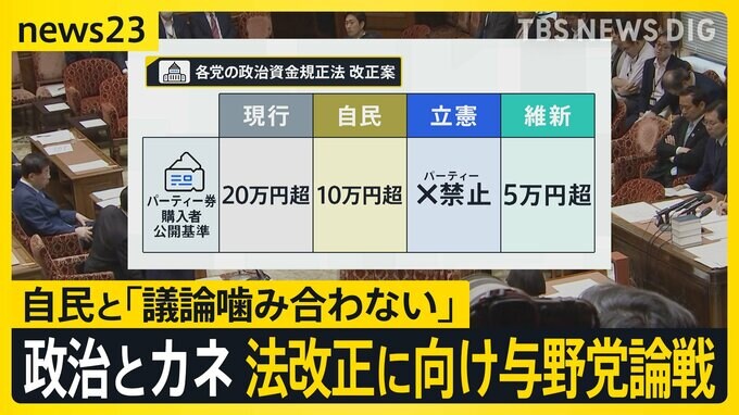 自民党派閥の裏金事件を受け、政治資金規正法の改正に向けた論戦が始まりましたが…与野党の議論は噛み合わず、自民が出した改正案が「一番ぬるい」と厳しい批判も。立憲民主党 柚木道義議員「なぜ5万円ではダメで…