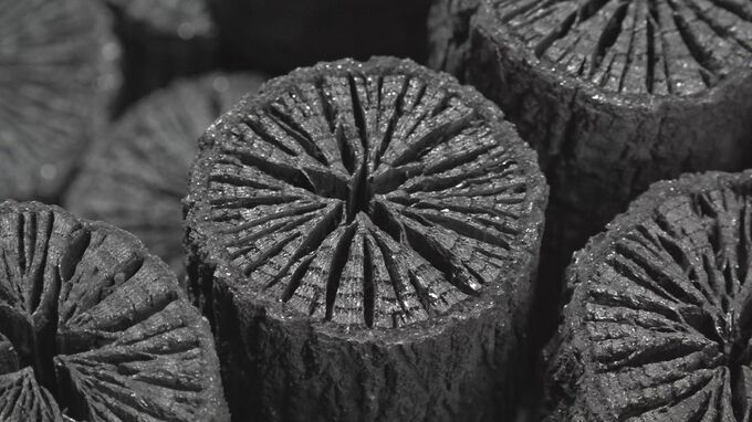 洗顔フォームに使われたのは、昔ながらの手仕事で丁寧に焼き上げ、茶道でも使われる「菊炭(きくすみ)」です。大野さんは2004年から、原料となるクヌギの苗木を周辺の耕作放棄地に植え、森を循環させながら炭を作ってきました。