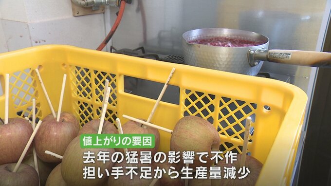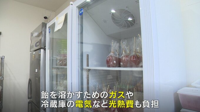 また、光熱費が値上がりする中、リンゴ飴は飴を溶かすためのガスや冷蔵庫の電気を使うため大きな負担となります。
