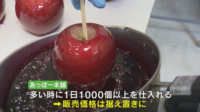 あっぽー本舗は多い時で1日に1000個以上のリンゴを青森県などから仕入れるため値上げが重くのしかかっていますが、販売価格は据え置いています。
