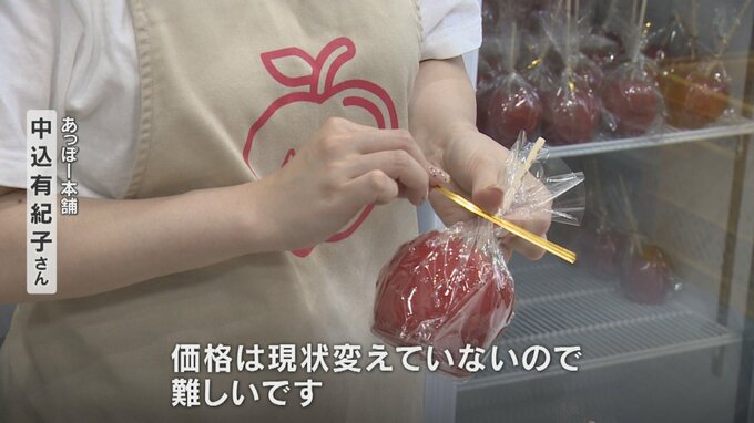 「野菜とかは半分に切って安く提供できるが、りんご飴はそれができないので、価格は現状変えていないので難しいです」