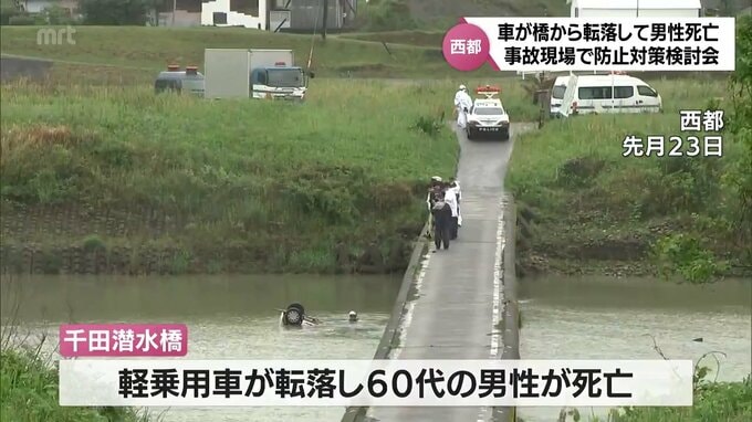 先月、宮崎県西都市にある欄干のない橋で軽乗用車が転落し、男性1人が死亡する事故が発生しました。事故の再発防止のため、住民や警察などによる検討会が開かれました。先月23日、西都市調殿の一ツ瀬川にかかる千…