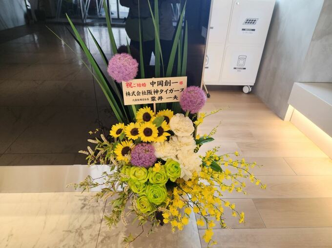 24日、お笑いコンビ「ロッチ」の中岡創一さんが自身のXに、昨年日本一を果たし、今シーズンでは5月24日時点でセ・リーグ首位となっている阪神タイガースの球団社長・粟井一夫氏の送り主名が添えられた生花の写真を掲載しました。