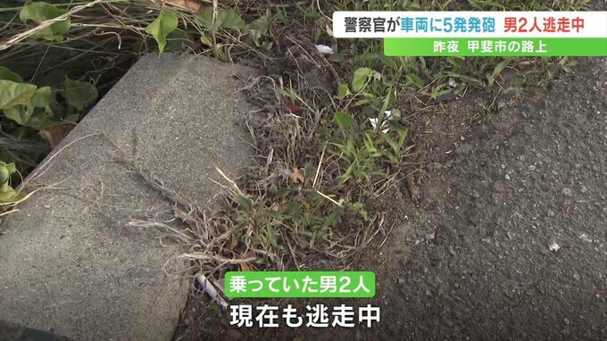 発砲現場から北西に約2.2km離れた甲斐市内の路上でワゴン車は事故を起こし、そのまま乗り捨てられているのが見つかりました。