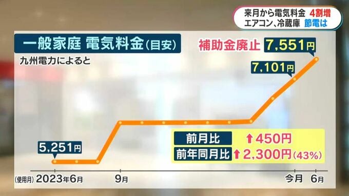 電気料金が来月の使用分から大幅に引き上げられる見通しです。国の補助金廃止に伴うもので去年の同じ月と比べて4割以上、電気代が高くなります。