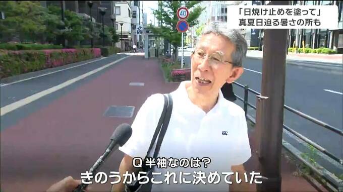 「日差し強いです。(半袖なのは?)きのうからこれに決めていました。」