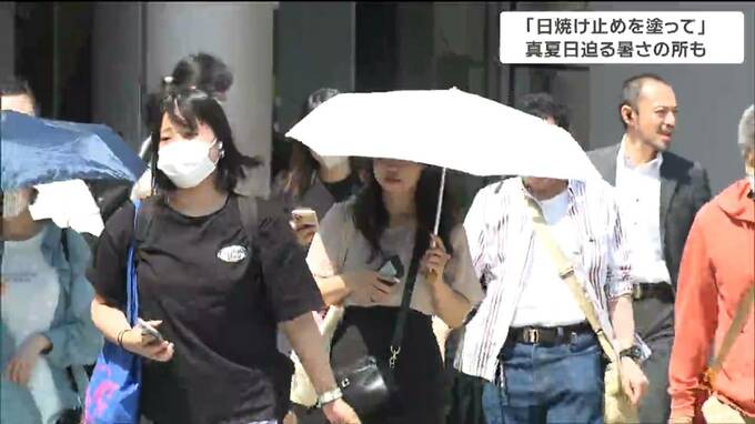 各地で朝から降り注いだ強い日差し。行き交う人々の中には日傘をさして歩く人の姿も多く見られました。24日の県内は、上空に流れ込んだ暖かな空気や、山越えの熱風が吹き降りるフェーン現象の影響で気温が大きく上がりました。最高気温は、最も高い登米市米山と蔵王で29.6度、塩釜で28.2度など、県内7か所で、今年一番の暑さになりました。そのほか、仙台で27.5度など、ほとんどの観測地点で25度以上の夏日となり、平年より4度から7度くらい高くなりました。そんな中、街の人たちは思い思いの対策で暑さをしのいでいました。