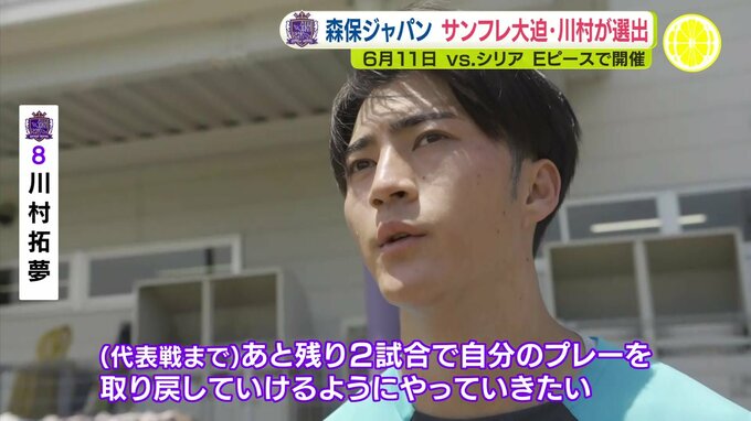 川村拓夢は、安佐南区出身で攻撃への積極参加と運動量が武器のボランチです。4月20日の札幌戦で負傷し、一時、チームを離脱していましたが、15日の鹿島戦で復帰。日本代表としてはことし1月にゴールも決めていて、さらなる活躍が期待されます。