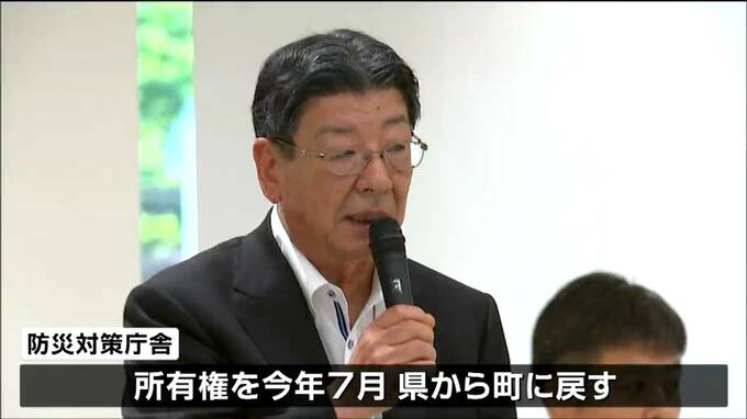 佐藤仁町長が防災対策庁舎の所有権を今年7月から、県から町に戻すことになった経緯を説明しました。