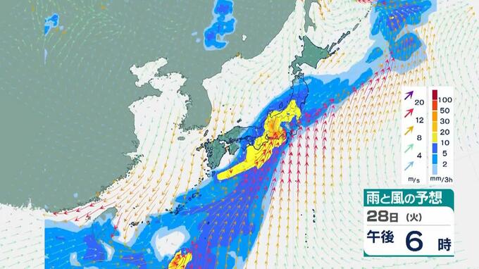 東海地方では、前線や低気圧に向かって南から暖かく湿った空気が流れ込むため、大気の状態が不安定となるでしょう。このため、28日未明から29日にかけて、雷を伴った激しい雨や非常に激しい雨が降り、大雨となる所がある見込みです。