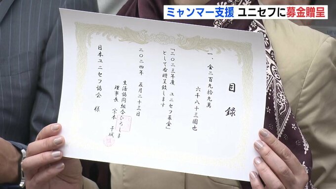 戦禍に苦しむミャンマーの子どもたちのために集められた募金が、ユニセフに贈られました。