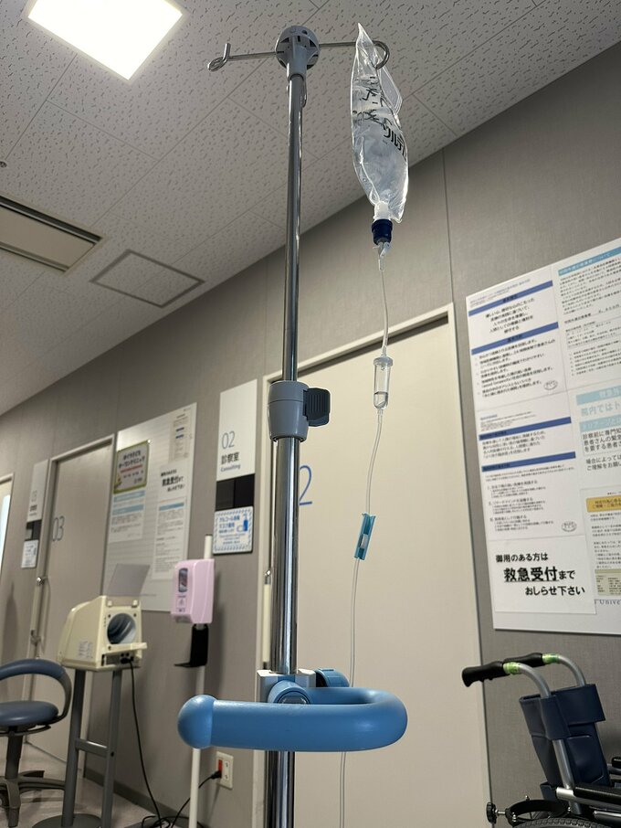 点滴の写真をアップし「お医者さんも経過観察しか出来ないとの事なので、絶食しながら早く良くなるように頑張ります。」と、その状況を明かしています。