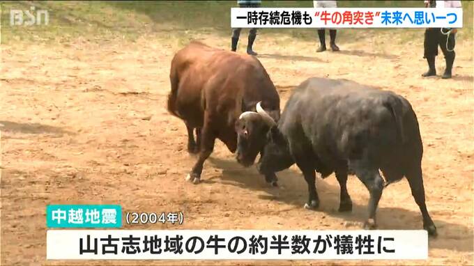 中越地震の発生から今年で20年です。全国9つの自治体から闘牛の関係者が26日、新潟県長岡市に集まり、震災復興のシンボル・『牛の角突き』の記念大会が開かれました。長岡市の山古志闘牛場。激しくぶつかり合う牛…
